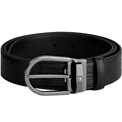 Черный кожаный ремень с подковообразной пряжкой 35мм от магазина премиальных ручек Premium Pens в Кургане.